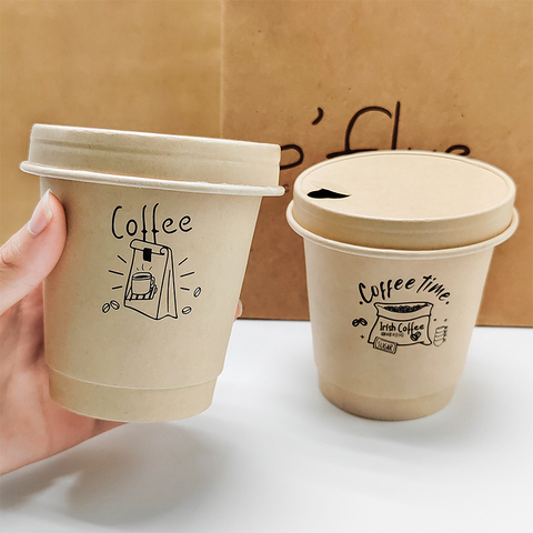 Compostable kağıt çift duvar kahve fincanı çevre dostu kağıt hamuru fincan ile kağıt kapak