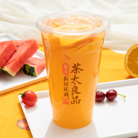 PP enjeksiyon U şekli suyu Boba çayı fincan yüzlü plastik tek kullanımlık özel LOGO siyah kapaklı 500ml 700ml PET içecek 1-3days